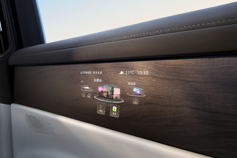 ID. ERA 9X的云栖智舱深度践行“人本科技”理念,行业首发的Smart Surface魔术屏通过微米级激光打孔技术,隐匿于木纹饰板之下,需用时精准浮现,兼顾美学与实用性;后排魔术屏支持开门补盲功能,视线无需转移,进一步降低了安全隐患。